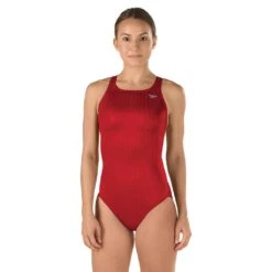 The Speedo Female Aquablade Recordbreaker is a great female competition swim suit. If this is your first time purchasing an elite swimsuit the Aquablade is the perfect place to start! Great female swimsuit for all ages and levels of swimmers. The unique Aquablade fabric offers lower drag co-efficient and is slicker than skin. The Aquablade Stripes create a channeling effect to streamline water away from the body. The Aquablade fabric is exclusive to Speedo swim wear.