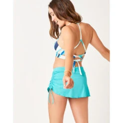 For a little more coverage with a feminine, flirty feel, the Hoku Swim Skirt was constructed with a built in bikini bottom, ruching at waist, and a cinchable side tie for an adjustable hem length. Keeps your rear covered, lets your playful spirit shine.
