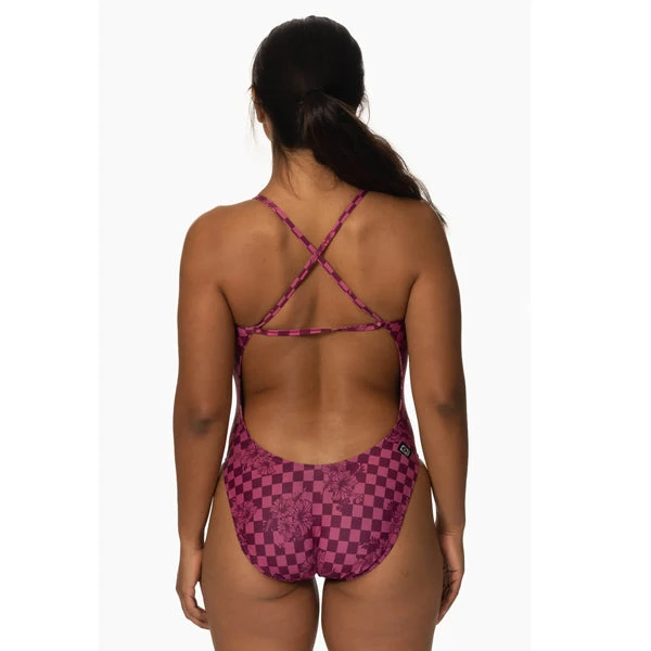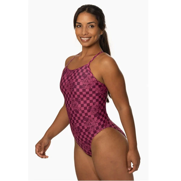 One of the bestselling styles, the Brandon is an adjustable fixed-back, full coverage one piece swimsuit with a criss-cross strap along the back. The strap is designed as one continuous band, which allows flexible distribution of tension along the shoulders and back.Â