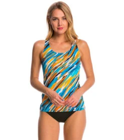 Perfect for your athletic lifestyle this Dolfin polyster tankini top will have you looking and feeling great during any water activity. Pair with the Dolfin polyester brief bottoms for a complete athletic swimsuit!