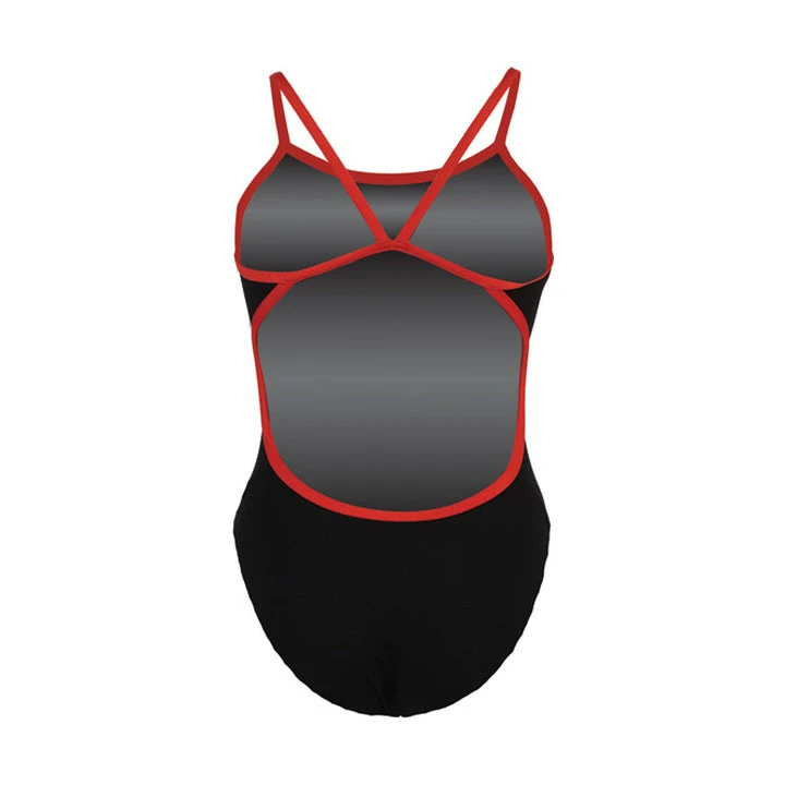 GREAT DETAILS: The ultimate team varsity solid for elite swim teams. This solid black string back one piece swimsuit with green straps provides comfort and support with minimal coverage.
