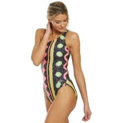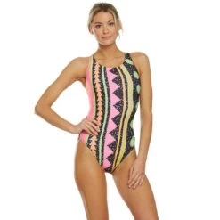 Throw it back with the Dolfin Classics Women’s Heat Wave Print Keyhole Back One Piece Swimsuit.Â