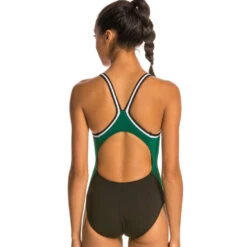 The Dolfin Polyester Color Block female swim suit is great for long hours in the swimming pool. Made of 100% polyester fabric this female swim suit will not stretch out, fade, or wear out like traditional lycra bathing suits. Stylish and affordable, Dolfin female swimsuits are great practice swim suits!