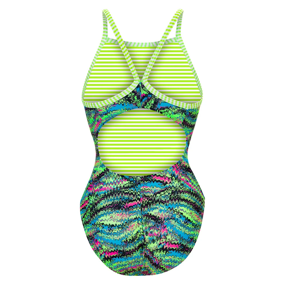 Hit the water in style in this LifeLine V-2 back! Featuring V-back straps with an open keyhole back detail, this practice suit is sure to become a new fav. Plus, this suit can hold up in long hours of chlorine time while still holding its tight and comfortable fit.