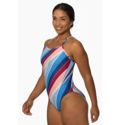 One of the bestselling styles, the Brandon is an adjustable fixed-back, full coverage one piece swimsuit with a criss-cross strap along the back. The strap is designed as one continuous band, which allows flexible distribution of tension along the shoulders and back.Â