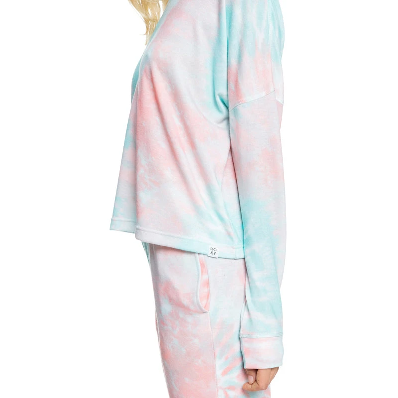 Don’t let the cold weather stop you from finding your groove. This lightweight sweatshirt features a comfy polyester elastane blend fabric with a soft-colored tie-dye print. Complete with a classic crew neckline, dropped shoulders, and exposed overlock stitching.