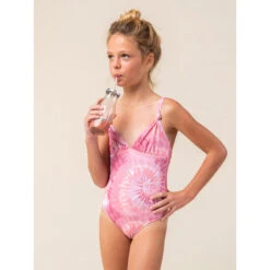 Find your groove this summer with a one-piece swimsuit featuring a soft-colored tie-dye print. The recycled REPREVEâ„¢ fabric ensures flexibility for complete mobility, whether deep end pool diving or wave splashing. Adjustable ring and slider straps provide the perfect fit for nonstop fun.
