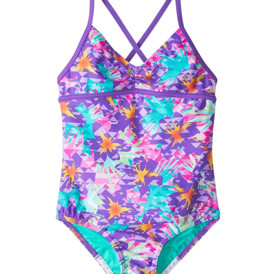 Pay a tribute to the tropics in bright florals. The Speedo Girls’ Jungle Floral One Piece Swimsuit features an amazing print in incredibly chlorine-resistant fabric. Its sporty straps and silicone grippers ensure this bathing suit always stays put.