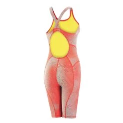 In addition, a patent pending taping and inner textile design known as the suit’s Endo Compression Cage provides a shield of support for the abdominals, obliques and quadriceps. This cage not only creates a snapback effect in the water but also helps to increase distance per stroke. Working in tandem with this technology is the Venzo’s Seamless Exo Shell, a sleek construction geared toward streamlining body position. Finally, the Venzo’s bonded X-finity Straps provide athletes with a state-of-the-art combination of comfort and stability as they move effortlessly through the water.